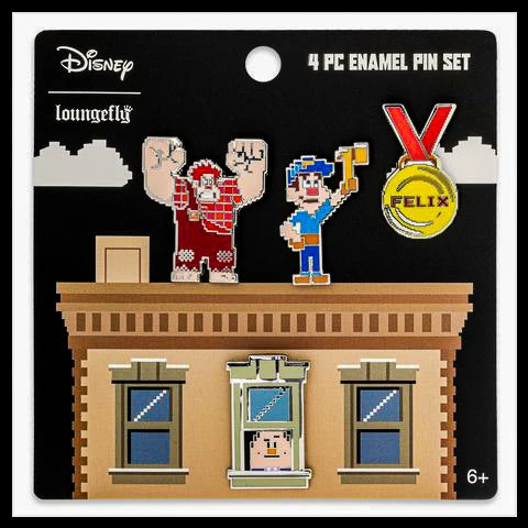 - 4 Piece Enamel Pin Set on a beautiful backer card from Disney Wreck-it Ralph.