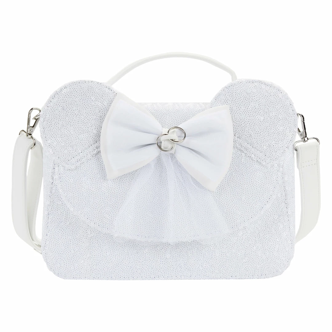 - Sequin crossbody with faux leather trim